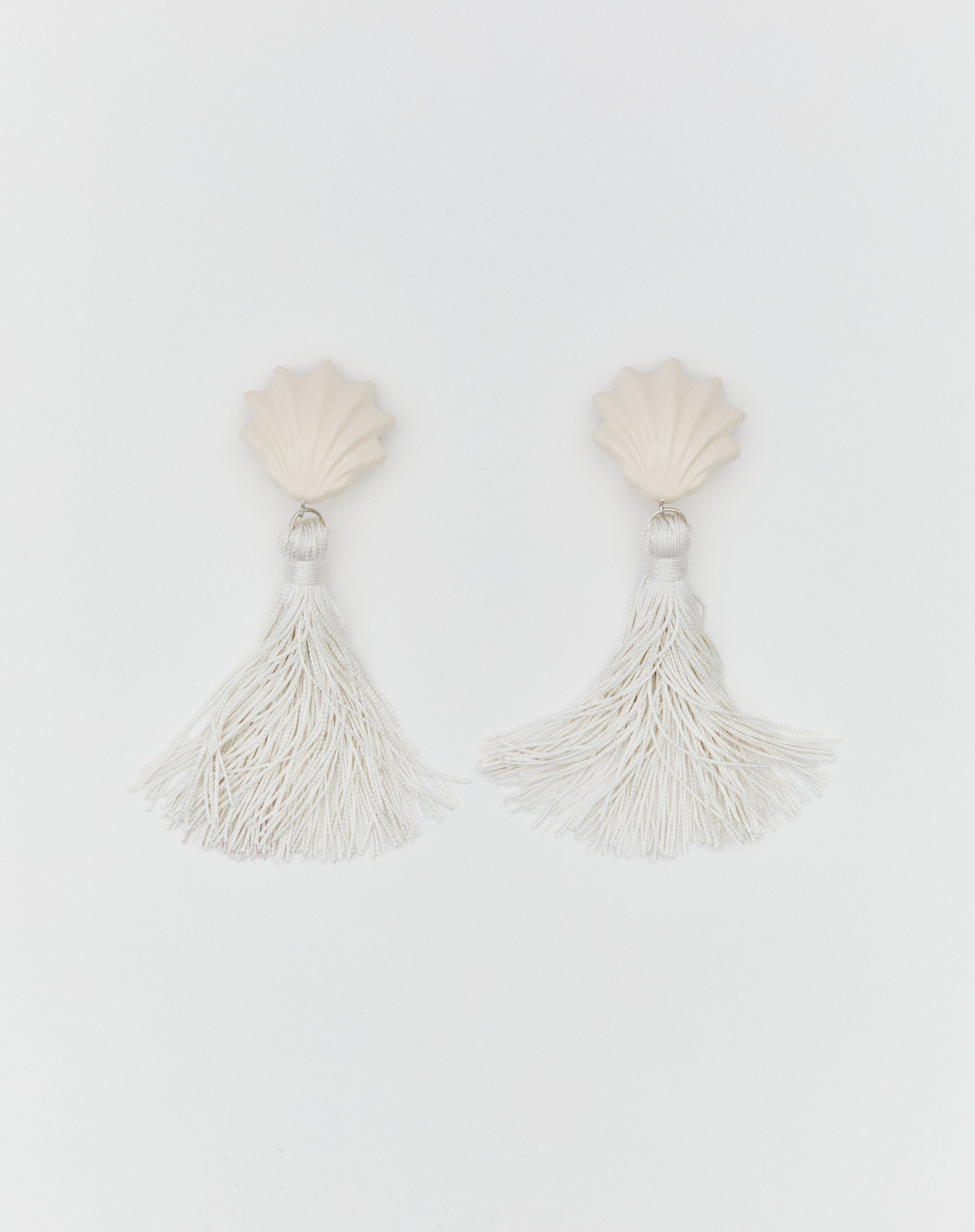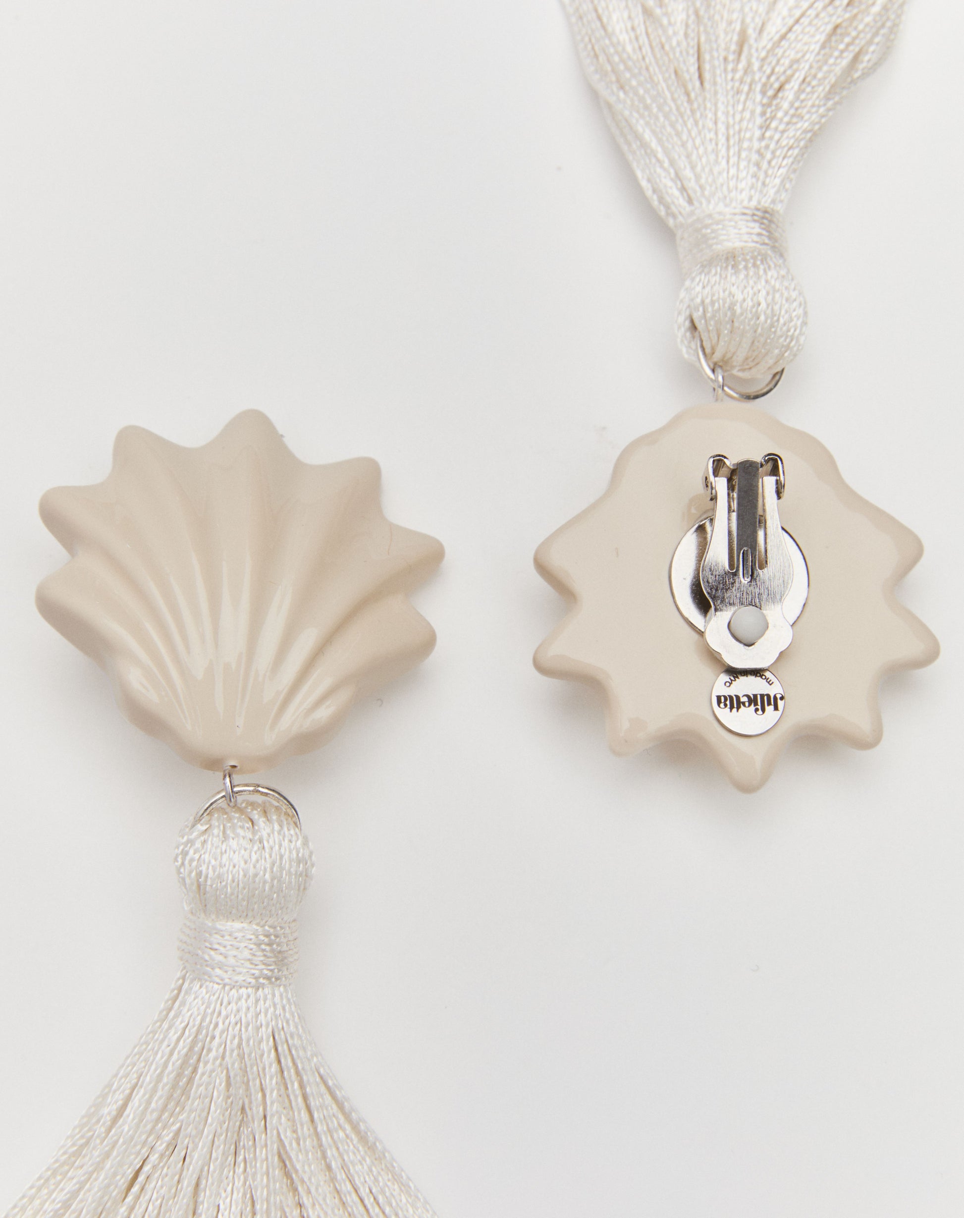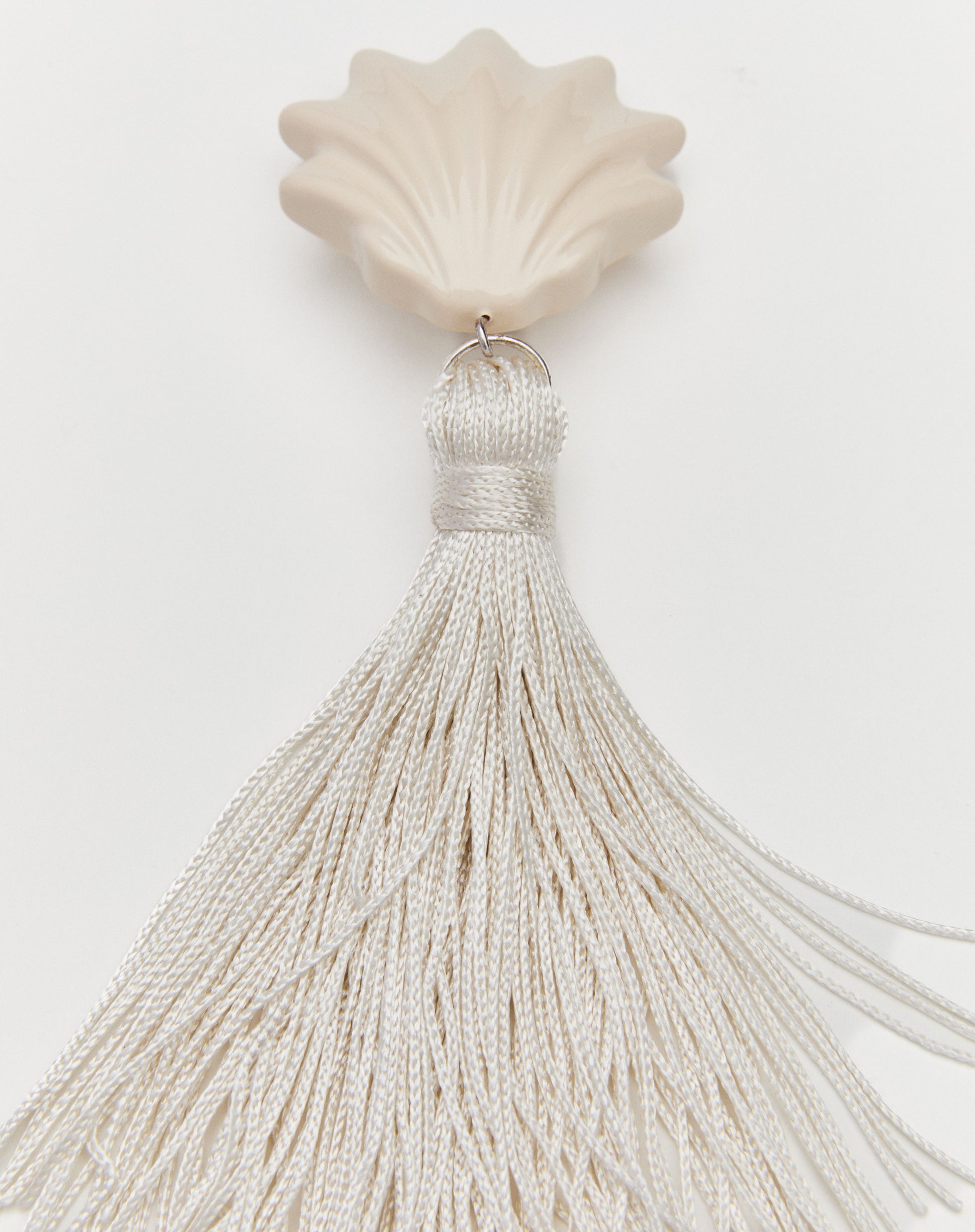 Sculpted in smooth resin and hand-painted with enamel, the Biarritz Earrings are a bold statement of effortless glamour. Designed as clip-ons for all-day comfort, they feature an ivory silk tassel that flows gracefully with every movement. At 10 cm in length, the tassel adds a touch of fluid elegance—perfect for day-to-night wear.