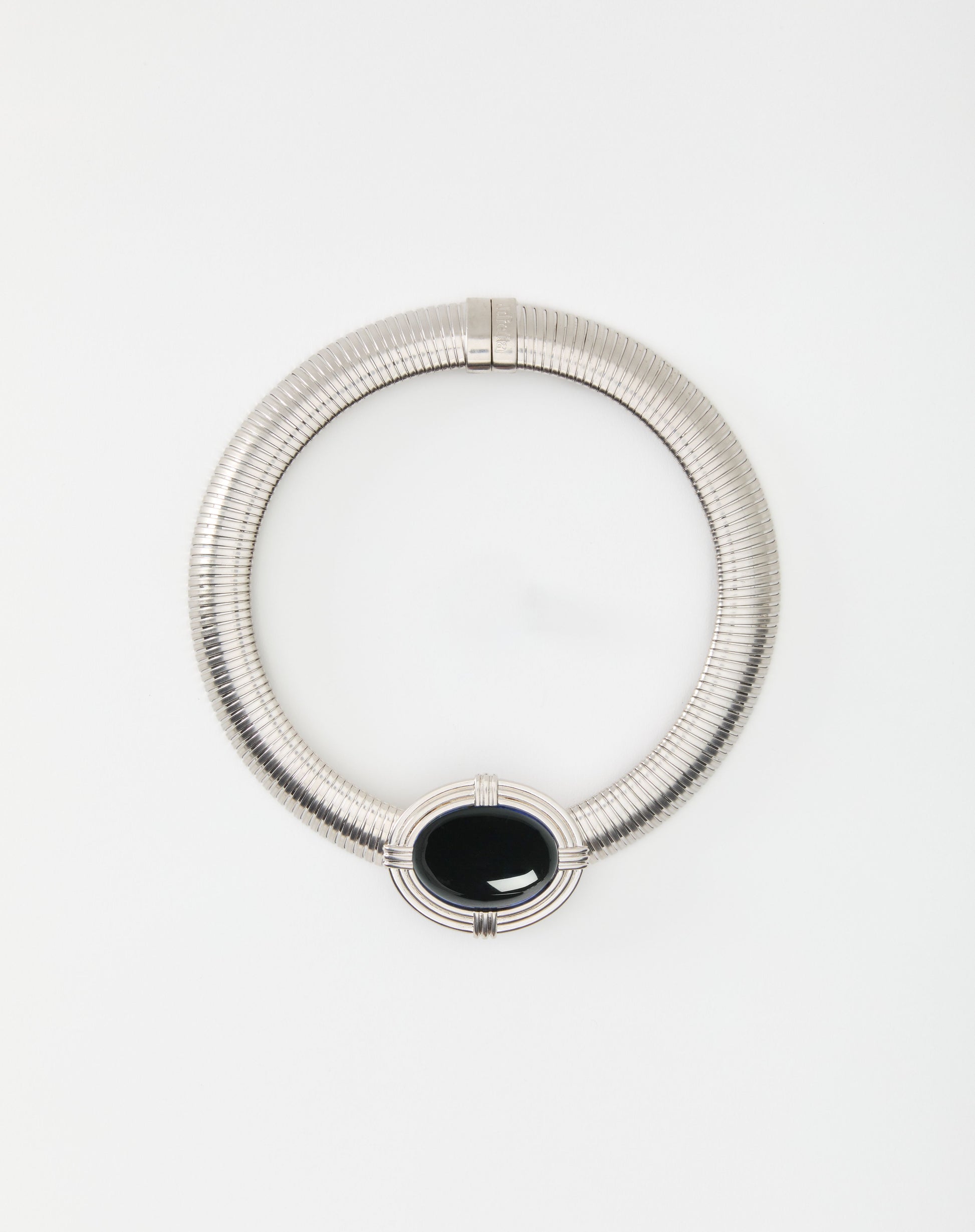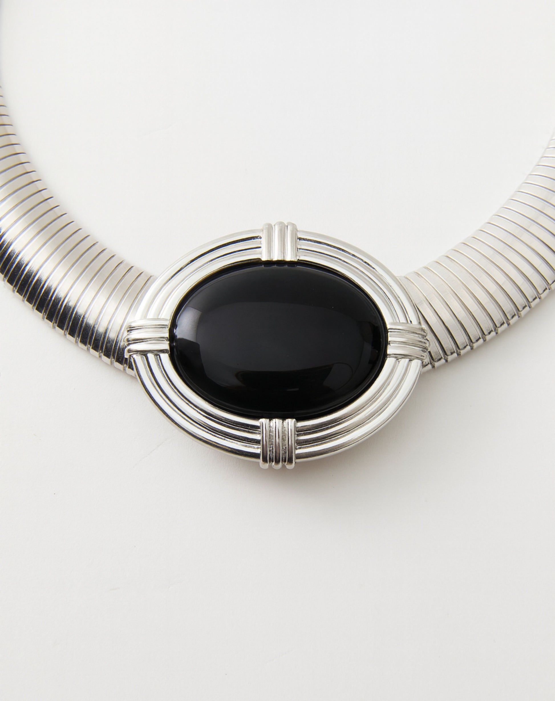 A timeless piece that blends sleek elegance with modern versatility. Crafted with a flexible Tubogas chain, this choker features a removable black onyx pendant for multiple styling options.