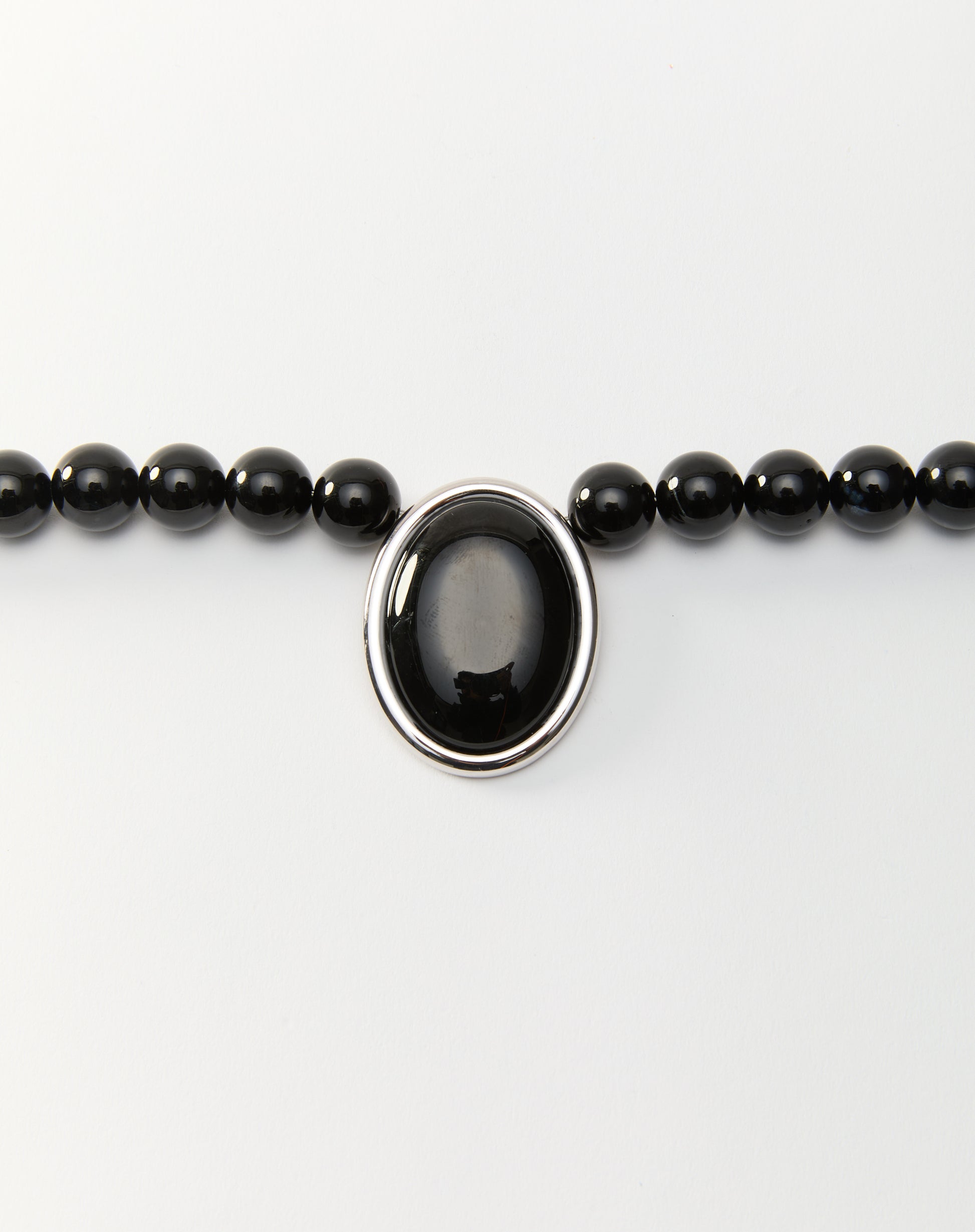Meet the Jude necklace. This black onyx beaded design features a large oval onyx pendant and is finished with our signature magnetic clasp for effortless wear. Each piece is one of a kind, with subtle variations that highlight its artisanal nature.