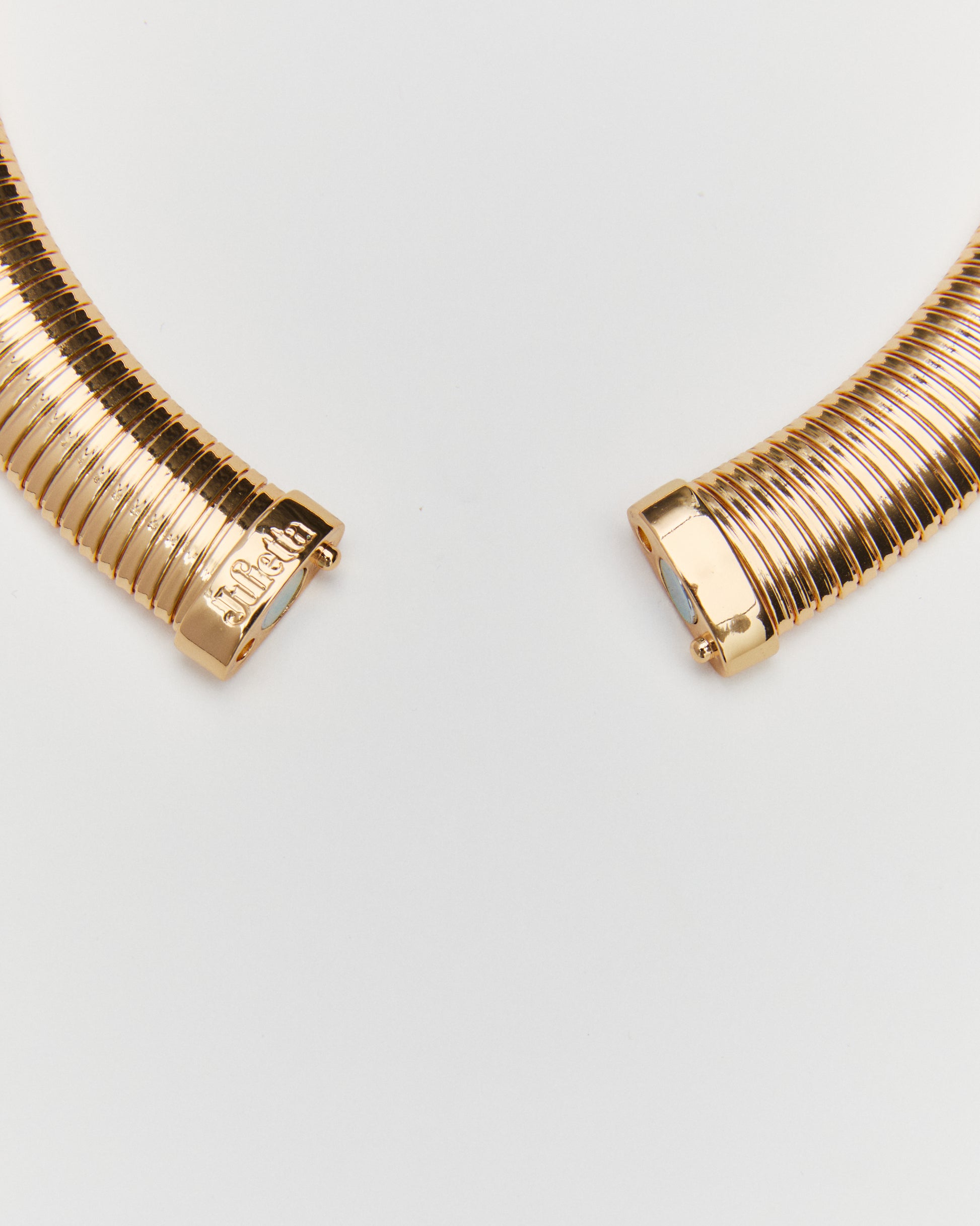 A timeless piece that blends sleek elegance with modern versatility. Crafted with a flexible Tubogas chain, this choker features a removable pendant for multiple styling options.