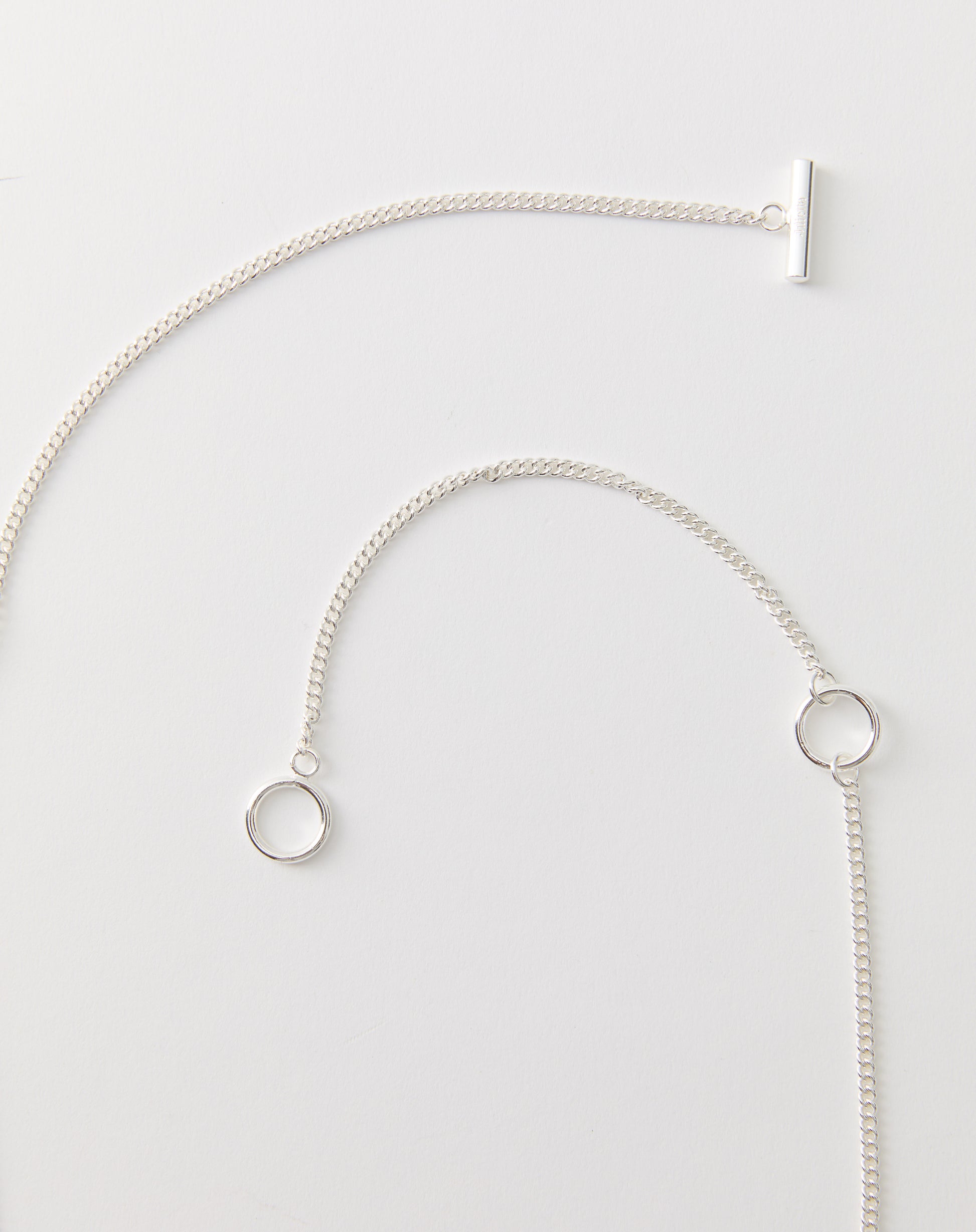 Designed to be worn two ways, the adjustable chain can be styled long at 32 inches or shorter at 20 inches, and can also be doubled for a layered look. Crafted from rhodium-plated brass, it offers both versatility and ease.