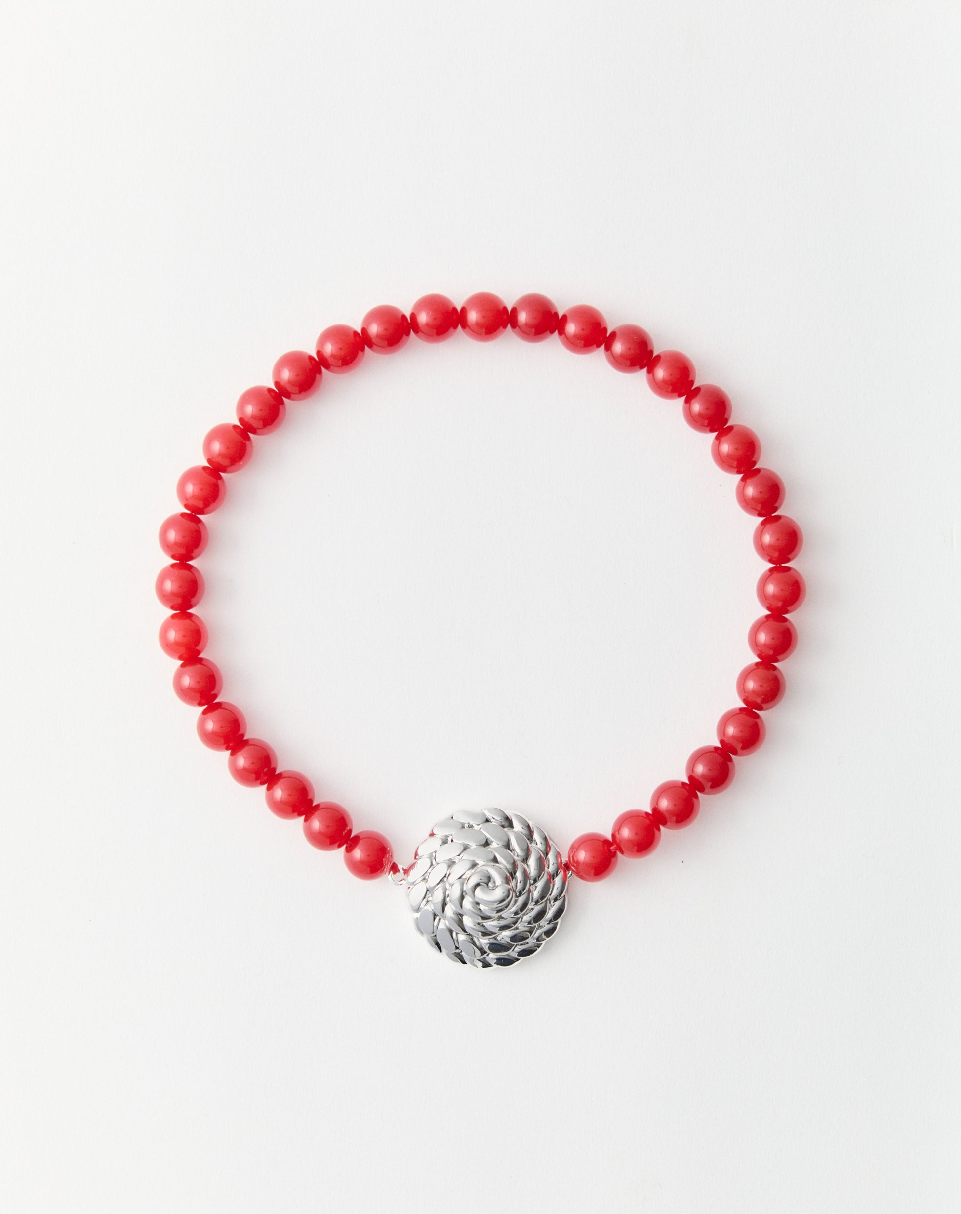 - Material: Rhodium-plated brass and red carnelian